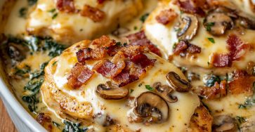 Smothered Chicken with Creamed Spinach, Bacon, and Mushrooms